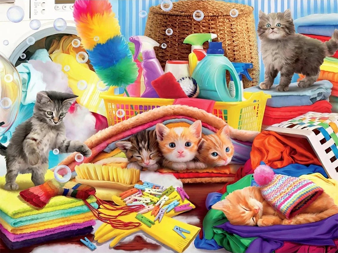 Folgende Inhalte enthält Dein Motiv ➩ Kätzchen und die Wäsche - Voll AB 5D DIY Diamond Painting