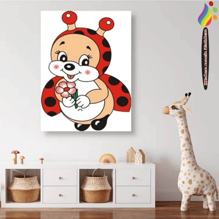 Marienkäfer mit Blume in der Hand - Malen nach Zahlen